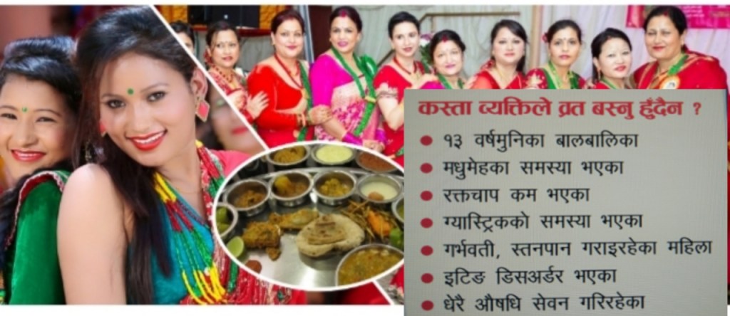 :- सुनिता केसी:- हरितालिका तीज नजिकिएसँगै महिलाहरू दर खाने चटारोमा छन्, व्रत बस्ने योजनामा छन् । परम्पराका पक्षपातीहरू तीजलाई निराहार र निर्जल व्रत बस्ने पर्वका रूपमा लिन्छन् । धार्मिक आस्थाका आधारमा व्रतलाई साधनाका रूपमा पनि लिइन्छ । तर, निराहार व्रत बस्दा र दिनभर नाचगानको थकाइले कतिपय महिलामा कमजोरीको समस्या पनि देखिने गरेको छ