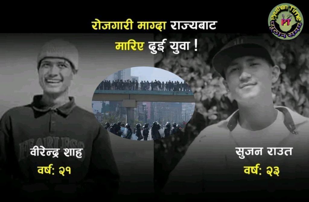 देशमा बाच्ने अधिकार छैन विदेशी भुमिमा जान खोज्दा सरकार ले गोली हानी हत्या गर्छ अव हामी युवा युवती कत जाने होइन यो नेपाल सरकार ले गर्ने खोजेको के गणतन्त्र यहि हो तिमीहरु को याहा न त रोजगारी दिन सक्छौं न त विदेश जान दिन होइन अव हामी भोकमरी ले मोर्ने त होला होइन