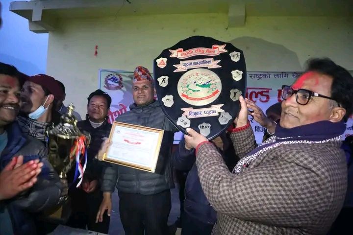भुवन केसी:- प्युठान नगरपालिकाको चौथो राष्ट्रपती रनिङ शिल्ड प्रतियोगितामा एथलेटिक्स ,भलिबल , कबडड्डी ,कराते र तेक्वान्दाे समेत जम्मा ५४ स्वर्ण पदक मध्ये मुक्ति माबी रातामाटा २५ स्वर्ण पदक सहित प्रथम ,जनता माबी बाग्दुला १४ स्वर्ण पदक सहित द्वितीय र बालविधा माबी मरन्ठाना ७ स्वर्ण पदक सहित तृतीय भएकोमा हार्दिक बधाई एवम शुभकामना व्यक्त गर्दछु!!”